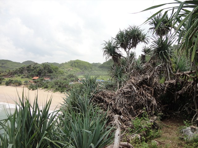 menikmati indahnya pantai drini dari atas bukit..terasa sepi..lapang..