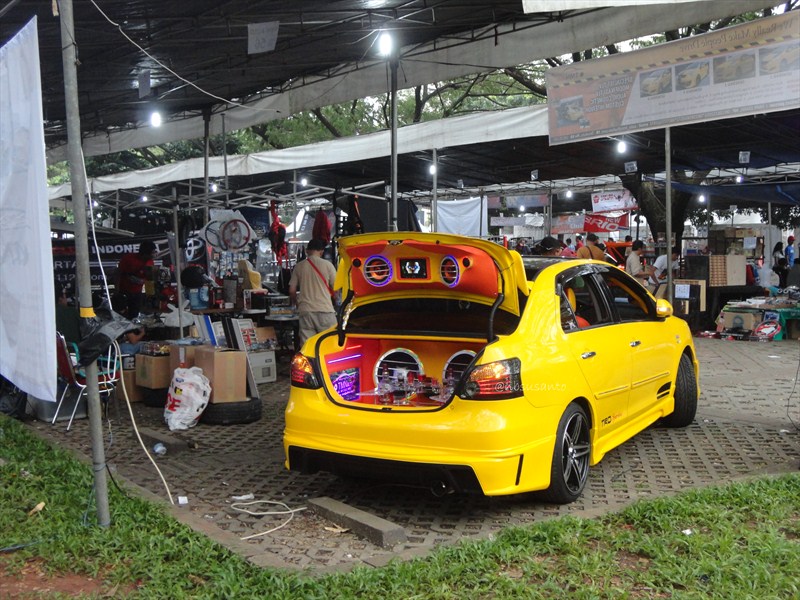 ada juga mobil yang dipamerkan dalemannya yang kinclong nan ganas..