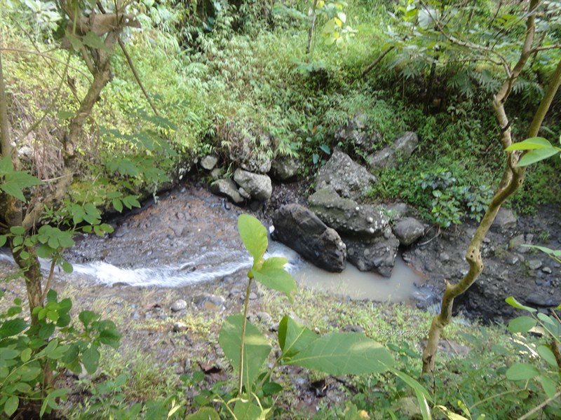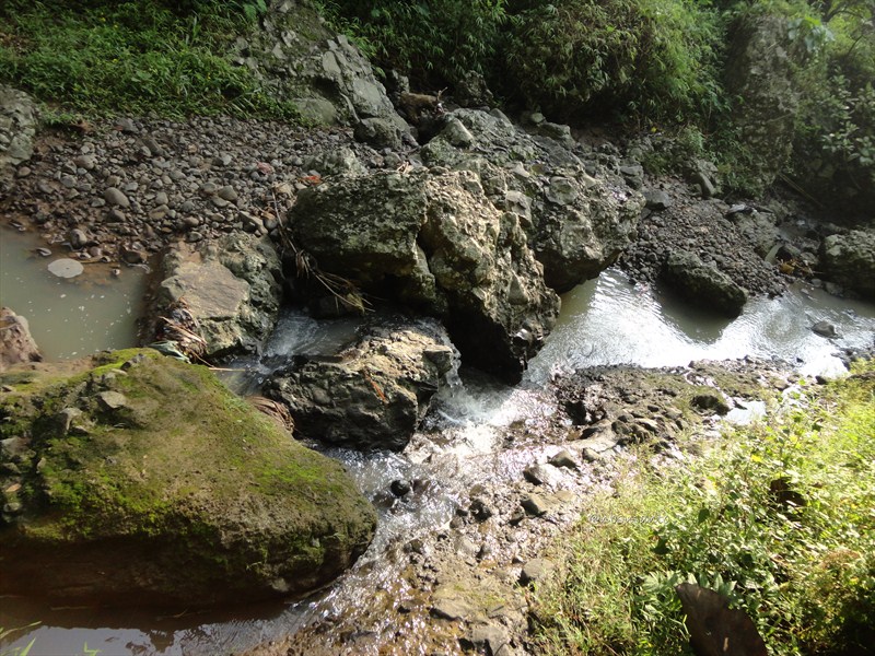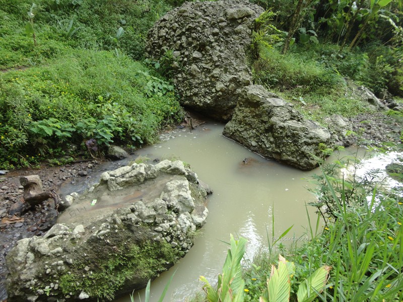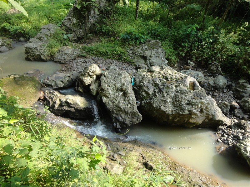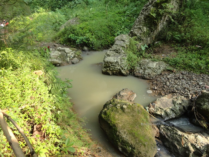 permukaan dekat curug berbatu kerikil namun di bagian air nampak warna berlumpur..