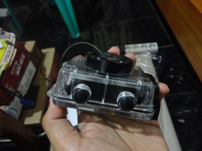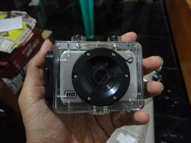 yep.. penampakan action cam 8ten di dalam housing waterproofnya..