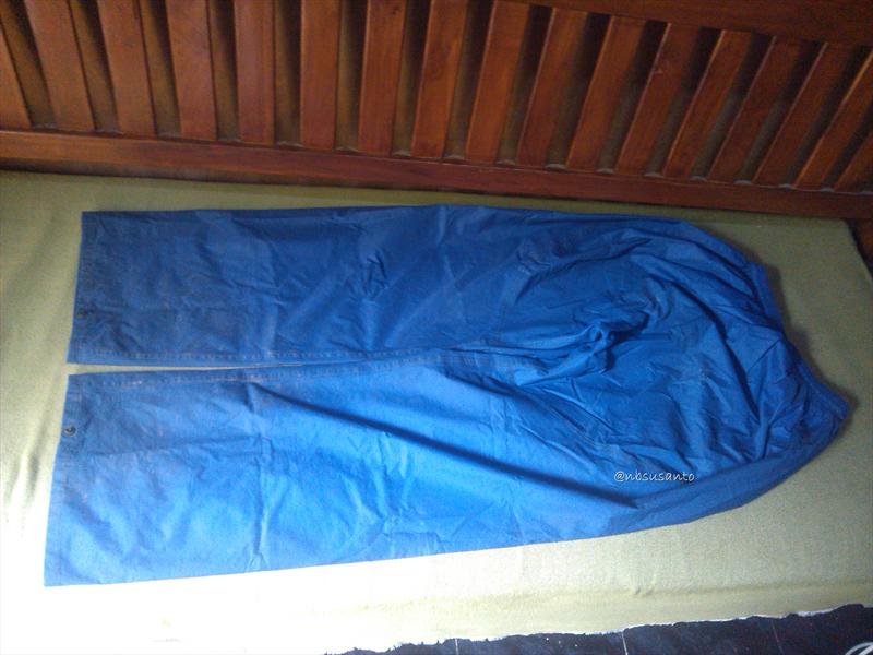 cuma ya itu, sayangnya bagian celananya sudah kemasukan air walau nggak sampe basah.. diakalin gimana ya.. setelah tau efek deterjen, mantol nggak pernah dicuci pake deterjen lagi sampe warna birunya sudah nggak biru apik lagi.. 😆