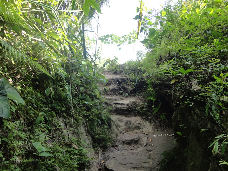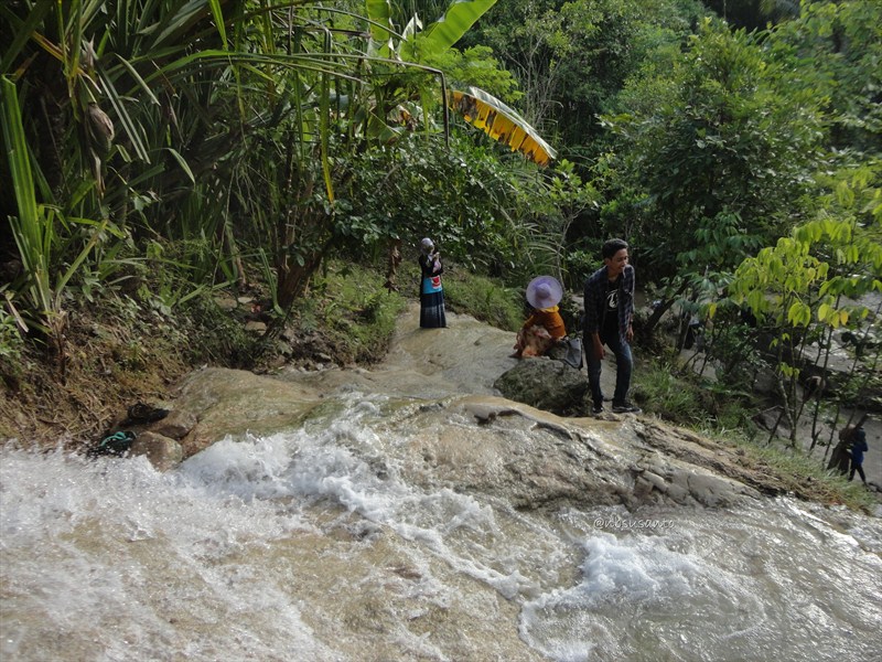 untuk menuju sisi bawah air terjun, salah satu jalan tidak basah yang bisa dilalui adalah melalui pinggirannya.. hati-hati karena terjal dan licin jika basah.. tapi apik kok.. ๐