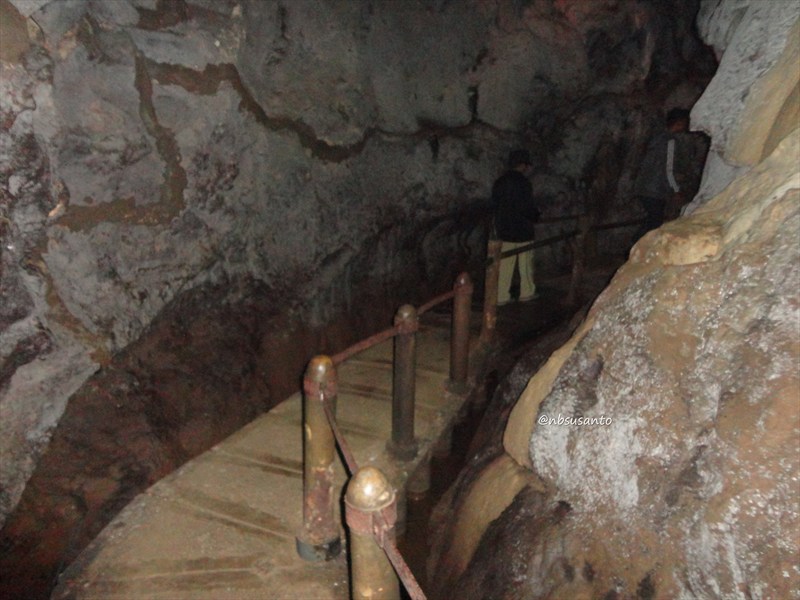 di dalam goa juga beberapa kali harus naik turun tangga.. untung saja di bagian tangga penerangannya cukup setidaknya untuk melihat apakah benar melewati jalan..