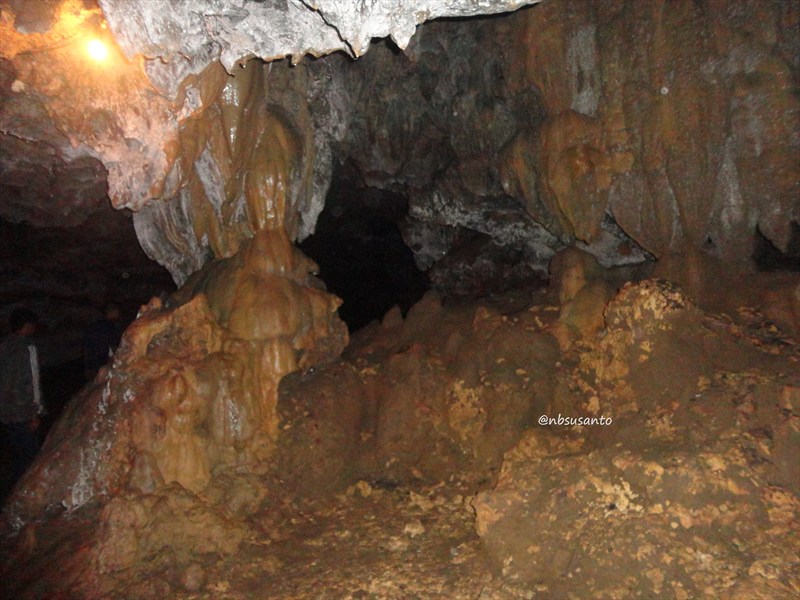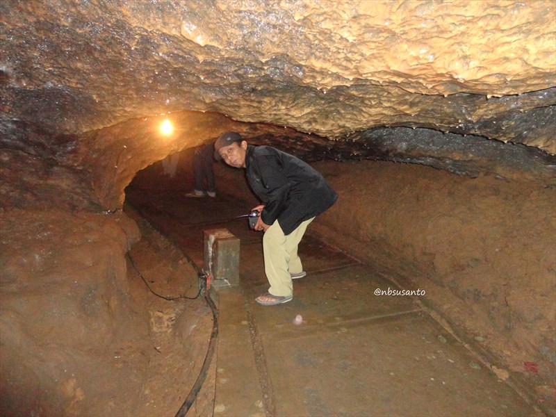 setengah jam ternyata sudah cukup untuk masuk ke semua lorongnya.. malah di akhir perjalanan dapat momen apik, cahaya lampu kuning ke arah bebatuan.. 😀