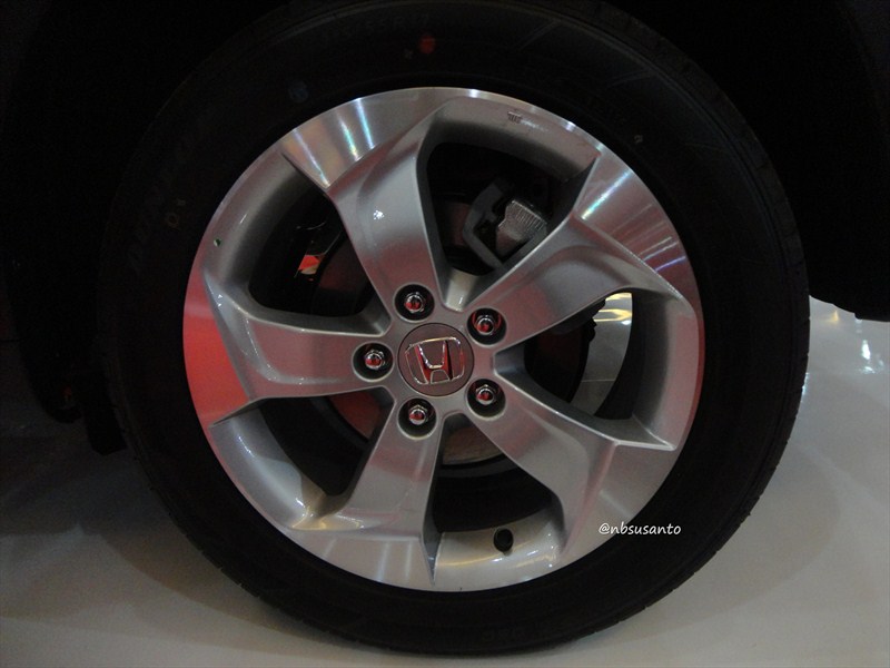 velg honda HRV berukuran 17″ dan dibalut ban 215/55.. bentuknya tak mewah tapi cukup proporsional dipandang.. untuk pengereman sendiri di semua seri sudah all disc brake yang dilengkapi dengan sistem ABS+EBD+BA.. cukup lengkap, eh harusnya memang begitu ding..