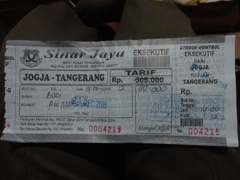 kena harga 110 ribu rupiah.. di spanduk agennya tertulis bahwa Sinar Jaya menggunakan suspensi udara dan menjanjikan kenyamanan menyerupai sedan mewah.. nanti kita lihat dapat apa saja.. :mrgreen: