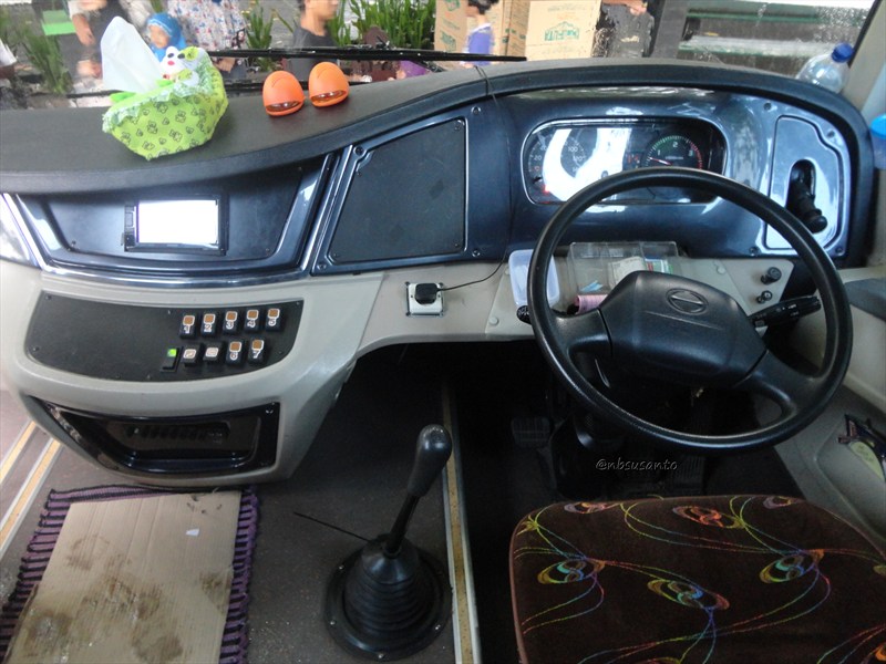 masuk ke dalam dan langsung foto dashboardnya.. terlihat dari stir, sinar jaya eksekutif ini menggunakan sasis dan mesin Hino.. cuma kalo serinya sih nbsusanto nggak tau, maklum baru sekadar penikmat saja.. :mrgreen:
