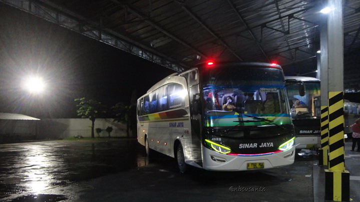 jogja-jakarta bersama bus PO sinar jaya berkaroseri laksana