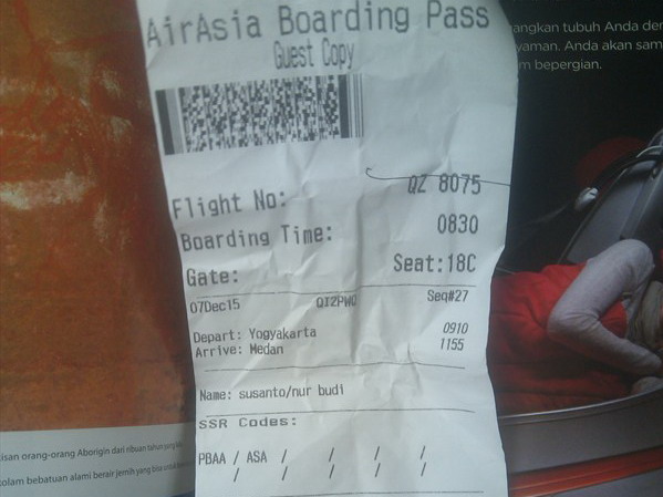 dengan nomor penerbangan QZ 8075, aslinya dapat seat 18C, tapi berhubung 18ABC itu rombongan, maka nbsusanto minta tukeran dengan yang pake 18A.. maklum pengen liat pemandangan dari jendela pesawat.. lha sebelum itu belum pernah dapat dekat jendela kalo naik pesawat..