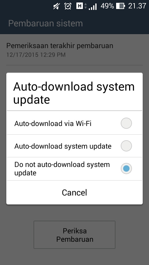 nbsusanto pun ubah ke pengaturan auto-download system update.. dimatikan saja.. harusnya sih, proses yang tadi nggak akan berlanjut.. nyalakan wifi lagi.. lha kok proses berlanjut padahal sudah dipaksa berhenti tadi.. selalu begitu saat menyalakan wifi.. semprul ki! memang cuma 100an MB, tapi sudah dimatikan autodownload nya kok pas konek melanjutkan download? 100 MB mending buat yang lain.. ra kalap.. 👿