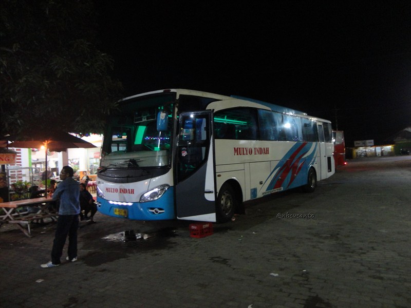 sekitar 18.30 datanglah sesosok bus Mulyo Indah dengan body Jetbus Travego garapan karoseri Adiputro.. *ngarepnya sih Adiputro Jetbus HD2 Setra πŸ˜† tapi tak apalah yang penting bisa ke jakarta dengan nyaman.. πŸ˜€ nggak sempet banyak foto-foto karena sudah banyak penumpang dan bus akan berangkat..