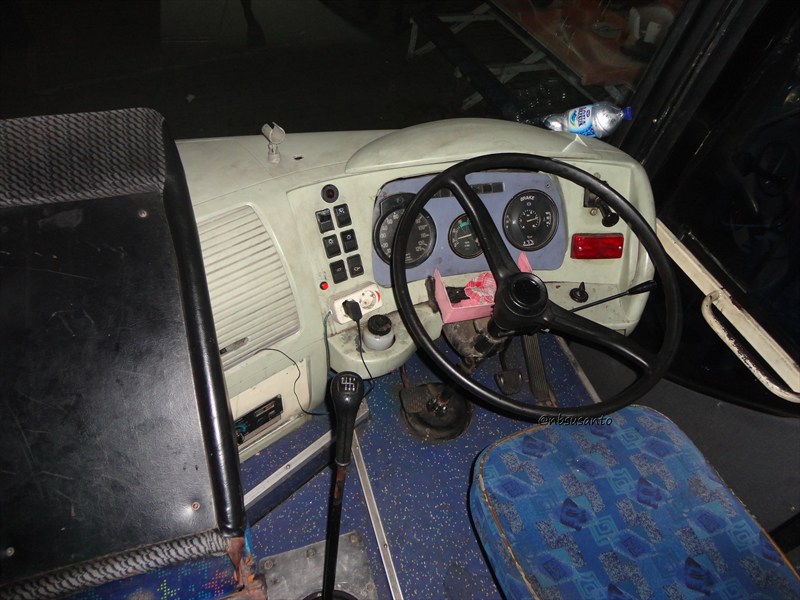 sekitar jam 22.15 bus berhenti rest area rumah makan Grafika Banyumas.. pertama aras-arasen mau turun, diniatkan untuk foto-foto saja.. termasuk salah satu foto bagian sopir ini.. menampakkan bahwa bus ini menggunakan mesin dan sasis Mercedes Benz, mbuh serinya apa.. π