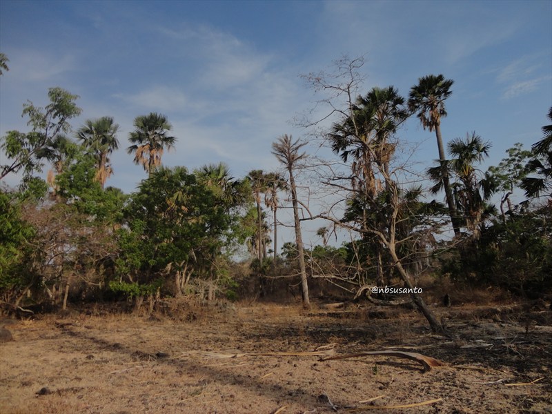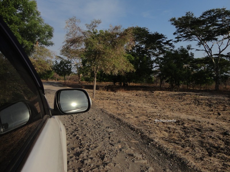 melintasi tanah berbatu dengan kanan kiri rumput kering dan berbagai pepohonan.. siput memang diciptakan tidak boleh manja.. walaupun memang hanya bisa jalan pelan saat itu.. mengamati satwa liar berupa monyet dan burung yang beterbangan bebas.. hinggap bebas tanpa takut ditangkap manusia..