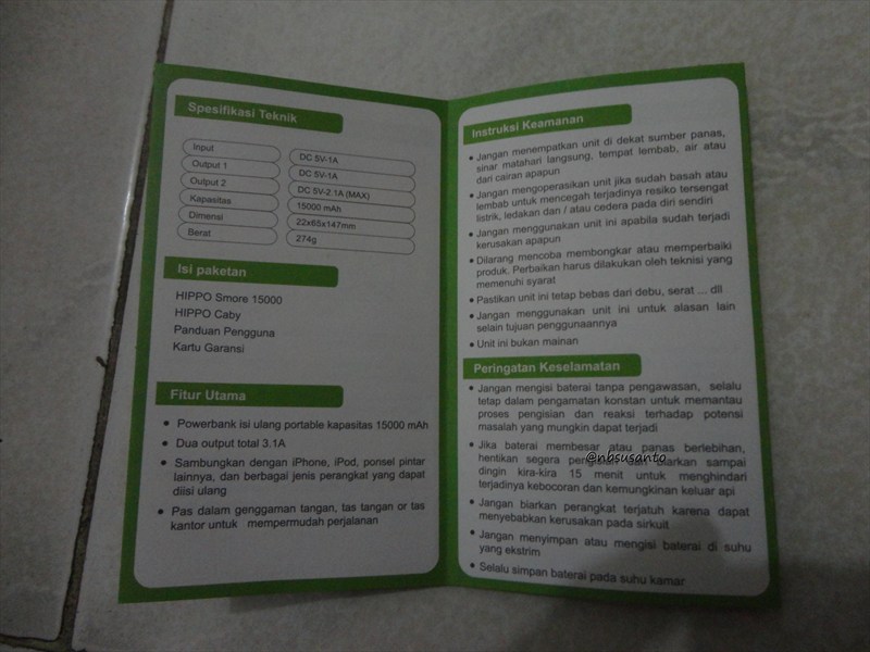 nah, powerbank hippo smore dengan kapasitas 15000 mAh ini dari spesifikasinya nampak menjanjikan, apalagi siapa yang tak tau kualitas hippo bukan.. biasanya untuk powerbank, ada harga ada rupa.. desain pun cukup menarik dan elegan.. kabel yang disertakan sepintas nampak berkualitas.. perlindungannya pun beragam.. walau untuk performanya belum tau mengingat teman nbsusanto pun belum menggunakan sampe habis saat artikel ini ditulis.. oiya, sayangnya nggak ditulis pake cell apa.. 🙄
