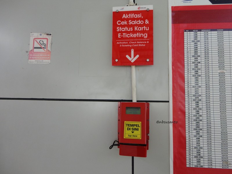 setelah sampai di stasiun, yg pertama kali dicari adalah alat tap e-money untuk aktivasi kartu agar bisa digunakan sebagai pembayaran di KRL.. memang sih bisa menggunakan tiket sekali jalan, tapi perlu antri dan menyiapkan uang cash.. itung-itung nyoba e-money selain di transjakarta.. artikel e-money nanti insya Allah terpisah.. π