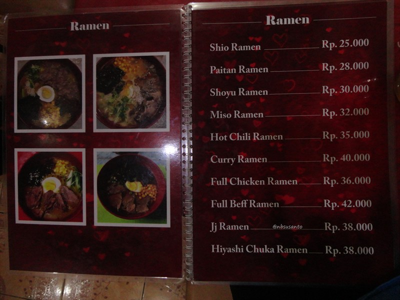 baiklah pesan.. ada 10 menu ramen disini.. setelah beberapa menu digambarkan oleh tomi, nbsusanto memilih Paitan Ramen karena cukup recommended dan tentu saja salah satu yang murah dibanding ramen lain.. hemat ndes.. buat beli tiket pulang.. 😆