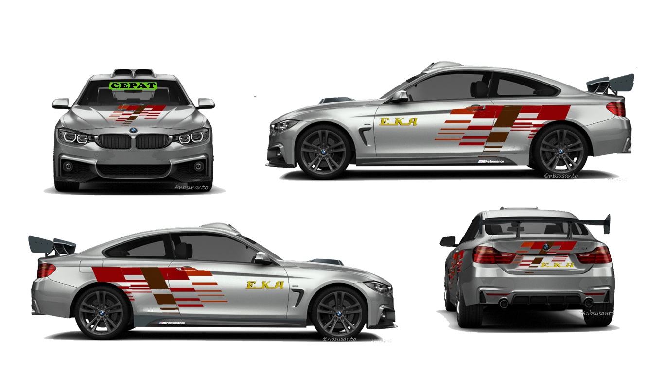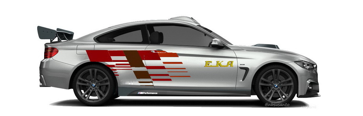 warna walaupun nggak sama, nbsusanto coba aplikasikan.. tentu saja dengan font khas EKA serta livery minimalisnya.. yang pasti sih sebelumnya nbsusanto coba utak atik berbagai aksesorisnya, kok ndilalah beberapa part bawaan sudah cukup seperti misalnya velg bawaan.. kalo dari sini yang terlihat ya adanya spoiler, roofscoop dan hoodscoop agar tidak terlalu polos.. :mrgreen: