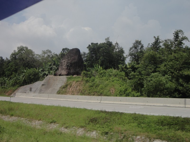 spot penanda hampir habisnya tol cipali dari arah barat adalah batu bleneng yang konon katanya tidak bisa dipindah pada saat pembangunan tol ini.. saat di batu bleneng itulah jalan menikung cukup terasa, kemudian di kiri kanan terlihat tebing menjulang yang diperkuat dengan beton.. yang pasti memang kombinasi perkerasan beton di banyak bagian dan aspal di beberapa bagian.. saat nbsusanto lewat di cipali sedang ada beberapa titik yang mengalami perbaikan jalan..