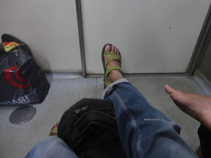 perjalanan waktu itu memang susah untuk tidur nyaman seperti kereta ekonomi pada umumnya karena kursinya yang tegak dan datar saja tanpa ada bagian menonjol untuk sandaran.. solusinya ya nbsusanto peluk tas sekaligus untuk tumpuan kepala.. syukurnya saat itu rasanya tenang karena ponakan yang ditinggal nampak sumringah setelah 24 jam penuh bersama nbsusanto.. hehehe.. maklum saja kepulangan sebelumnya pas balik ke jakarta ada yang ngganjel, dan bener saja beberapa hari kemudian orang rumah ngabari kalo ponakan mangkel ditinggal.. jadi tau rasanya jadi perantau yang meninggalkan keluarga demi tugas dan kadang anak kecil nemplek saja tidak ikhlas melepas kepergian.. urip ki wang sinawang kok, tergantung rasa syukurnya.. 😀