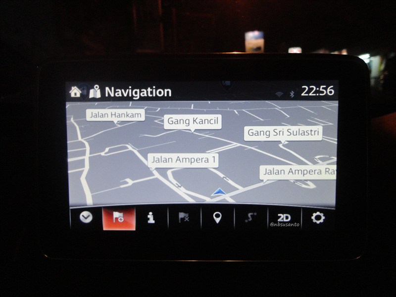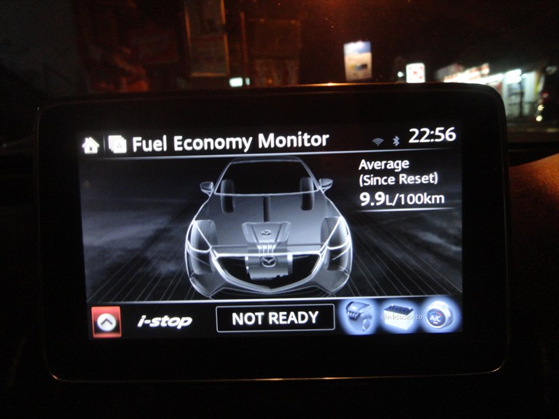 headunitnya 7″ beresolusi TFT dan sudah mengadopsi MZD connect ini cukup lengkap kemampuannya.. selain pemutar radio fm/am, dvd, mp3, wma, dengan input 2 port usb dan 2 slot sd card.. tentu saja bisa disinkronisasi dengan smartphone menggunakan bluetooth.. untuk seri GT terdapat peta yang menurut nbsusanto cukup membantu bernavigasi ria.. selain itu head unit mampu menampilkan monitoring terhadap konsumsi BBM serta kesiapan sistem i-Stop..
