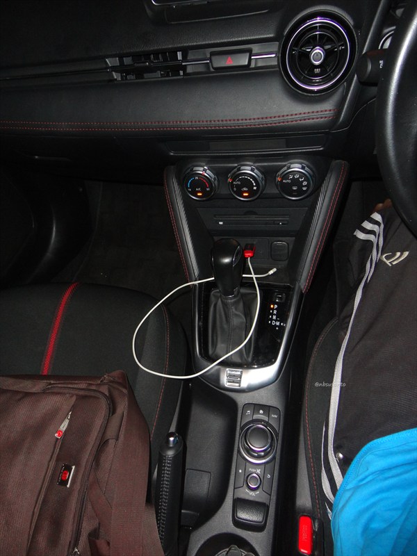 akhirnya selepas tengah malam berubah posisi.. me as a driver.. tentu diatur dulu posisi joknya agar nyaman.. kalo posisi stir sih sudah terasa pas dari temen yang nbsusanto gantiin.. cukup kantongi kunci saja karena sudah keyless, injak pedal rem dan tekan start-stop button maka mazda2 akan menyala.. mesinnya sih nbsusanto bilang cukup halus.. oke mulai jalan.. pindah ke transmisi D dulu dan penyesuaian dengan karakter gas.. terasa enteng.. yup, khas drive by wire.. melaju ke jalanan yang malam itu sudah cukup sepi.. memang sih kick down tenaganya keluar dan transmisi cukup cerdas untuk turun ke gear lebih rendah saat dibutuhkan, sayangnya feeling gas jadi kurang natural.. mungkin karena nbsusanto biasa bawa manual ya, terakhir naik matic sih jazz rs setaun lalu..