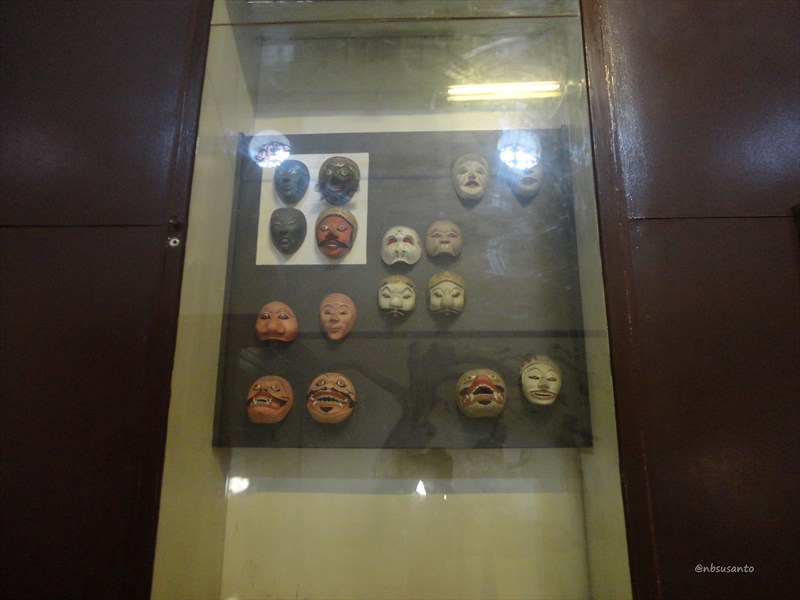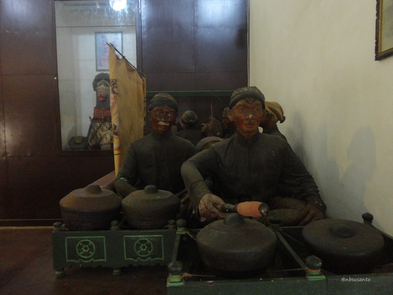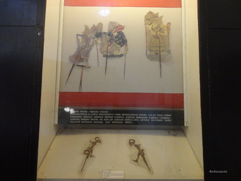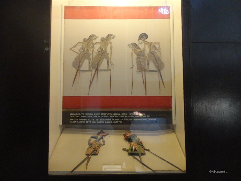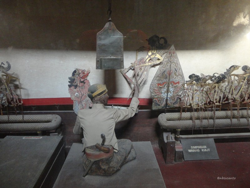 yang apik adalah sosok dalang lengkap dengan simpingan wayang kulit.. dari belakang seperti nyata banget.. bagian ini dipajang di dalam akuarium kaca.. untungnya kaca cukup bersih sehingga tak ada debu yang mengganggu foto..