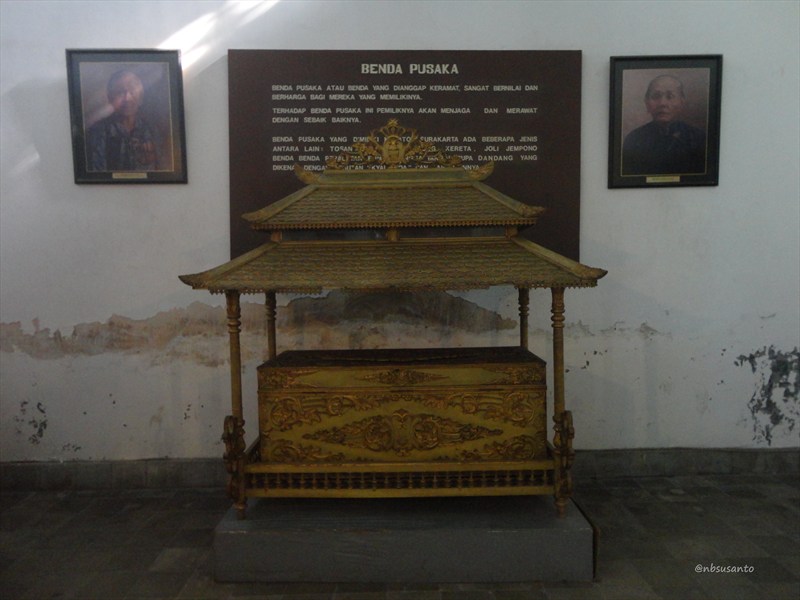 seperti tertulis di dinding keraton surakarta, benda pusaka atau benda yang dianggap keramat sangat bernilai dan berharga bagi mereka yang memilikinya.. san seterusnya.. tulisan ini diapit oleh lukisan foto dan ada sebuah benda pusaka di depannya.. memang cukup banyak koleksinya.. nbsusanto kumpulkan di galeri di bawah..