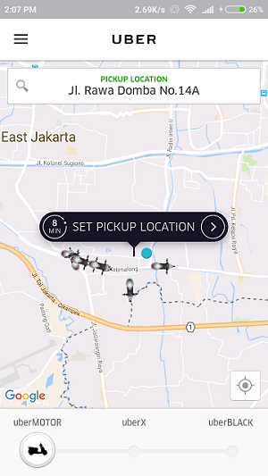 selesai daftar.. masih di dalam kereta joko tingkir yang akan berhenti di stasiun jatinegara sebelum subuh.. sekalian saja sholat kemudian jalan keluar stasiun sambil booking.. tentu saja yang dipilih adalah uber motor.. ngapain pake uber x atau uber black.. dalam rangka pengiritan.. 😆 tak menunggu lama kemudian si driver sms.. ya sms, nggak papa sih.. toh nbsusanto juga bukan orang selalu suka telpon.. kadang males je.. hahaha.. tak lama kemudian driver uber datang dan nbsusanto pun naik agar segera sampe dan meneruskan tidur.. maklum kereta ekonomi buat tidur.. emm.. ya begitulah.. 🙄