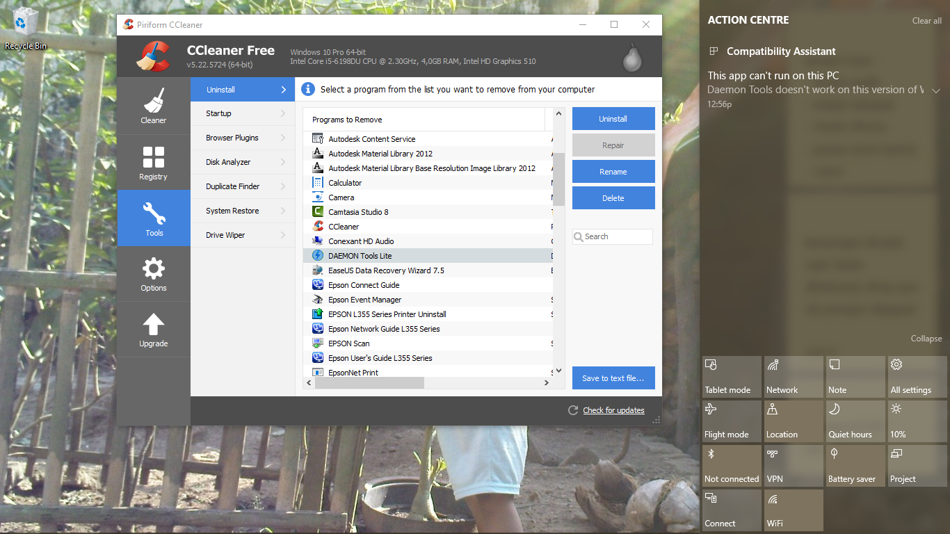 biasanya nbsusanto uninstal program yang membandel dengan ccleaner.. ya software sekalian untuk bersih-bersih.. tapi sayangnya hal yang sama masih terjadi.. daemon tools nggak bisa dihilangkan.. waksss.. iki opo.. berarti butuh pemaksaan untuk uninstal.. bisa sih pake cmd..