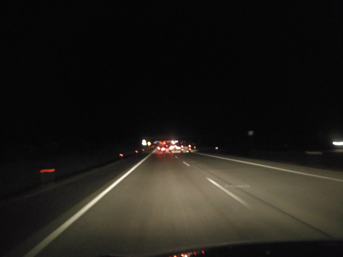 tenane kalem? yang pasti sih di cipali masih penyesuaian dan tak ada yang terlalu bisa diceritakan.. lampu standar saja untuk melibas tol pejagan-kanci yang hingga saat ini masih gelap.. mungkin sesekali sein berkedip dan grand avanza goyang kanan pindah jalur untuk overtake.. karena kecepatan juga masih di kisaran 80-100 terasa enteng nurut saja dengan isi 6 orang.. namun begitu masuk tol pejagan-pemalang yang masih berujung di brebes timur, jalanannya menggoda.. perkerasan yang lumayan apik serta kondisi yang tak terlalu ramai pun membuat goyah..