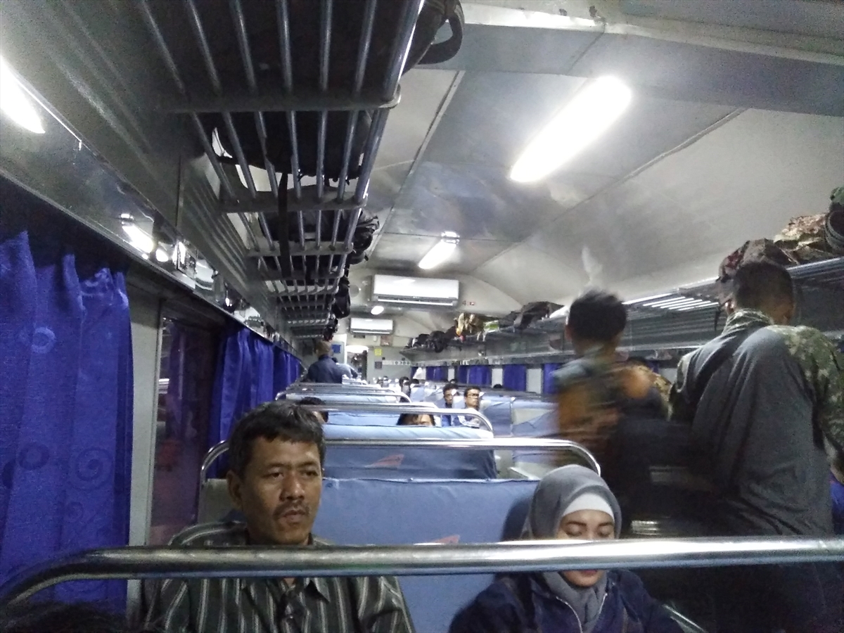 jam 18.01 kereta berjalan pelan meninggalkan stasiun pasar senen.. di kereta 3 ini nbsusanto bisa bilang akselerasi sangat halus.. pun begitu nanti pada saat pengereman.. patut diacungi jempol lah.. sayangnya lupa mengamati sawunggalih utama ini memakai lokomotif apa.. tentang guncangan dan suara.. ya begini nasib kalo tidak di tengah pasti lebih terasa dan terdengar meskipun nbsusanto tetep bisa tidur nyenyak..