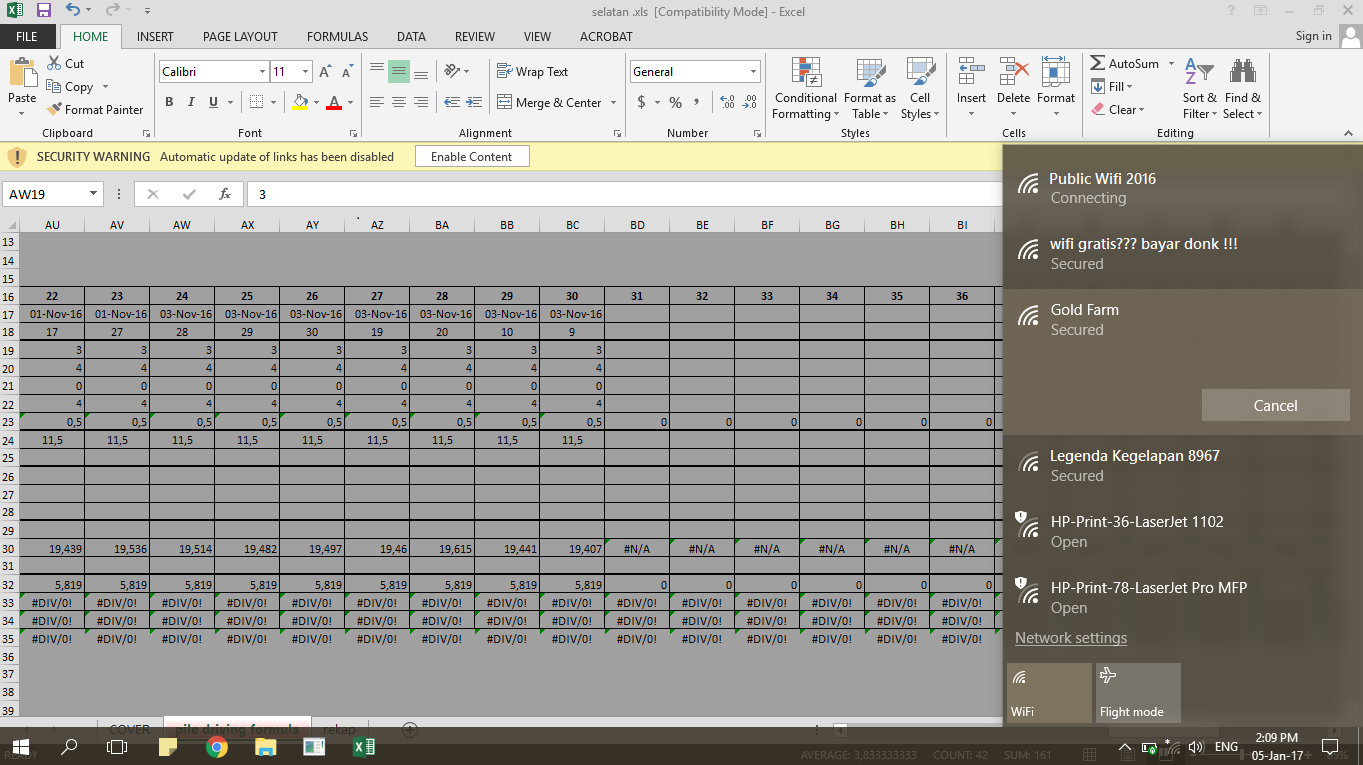 - sering susah tersambung wifi, entah di hardware, software atau karena cepatnya update windows, mungkin bisa dimaklumi jika wifi public, tapi bahkan tethering dengan hp sendiri kadang harus diulang berkali-kali, malah awal update ke windows 10 anniversary wifi sempat tidak bisa dan harus cari driver dengan perangkat lain
