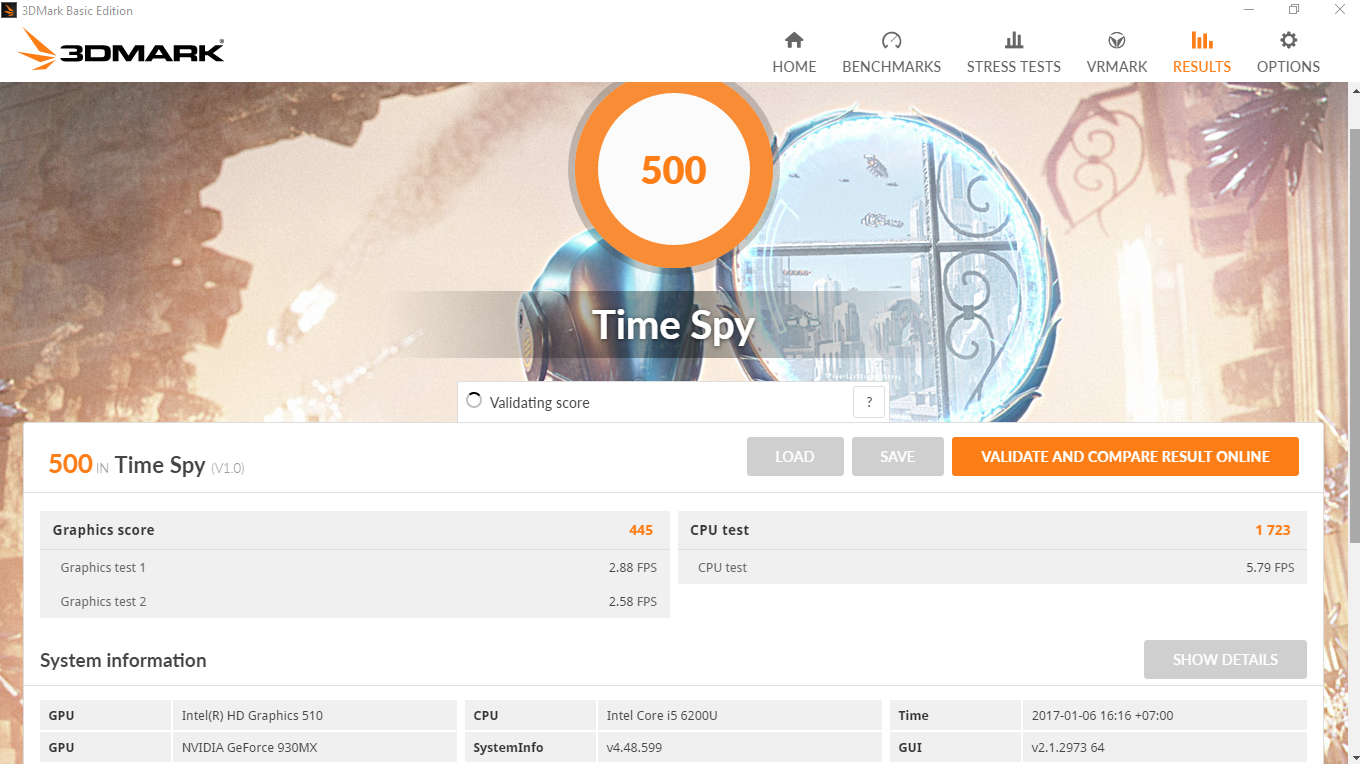 hasilnya sih pertama rasanya agak gimana gitu karena frame rate nvidia 930mx mosok di bawah intel hd 510, lha trus opo gunane discrete.. tapi kemudian tertulis cpu intel core i5 6198du dan vga nvidia geforce 930mx tertulis not recognized.. lhah gekgek durung mlebu database? 😆