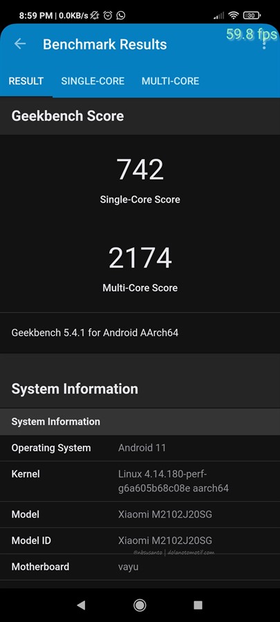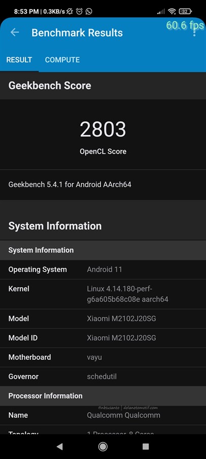 sementara itu hasil Geekbench 5 menghasilkan nilai OpenCL 2803, memang berada di antara Snapdragon 855 dan 865.. sementara aspek single core di nilai 742, di antara Exynos 990 dan Snapdragon 855.. untuk aspek multicore Poco X3 Pro menghasilkan angka 2174 yang malah berada di bawah Snapdragon 855 namun di atas Snapdragon 845.. sebagai catatan, hasil benchmark antar device bisa berbeda nilainya, bahkan 1 hp pada waktu yang berbeda.. sehingga ini bukan patokan utama, tapi bisa sebagai gambaran umum..